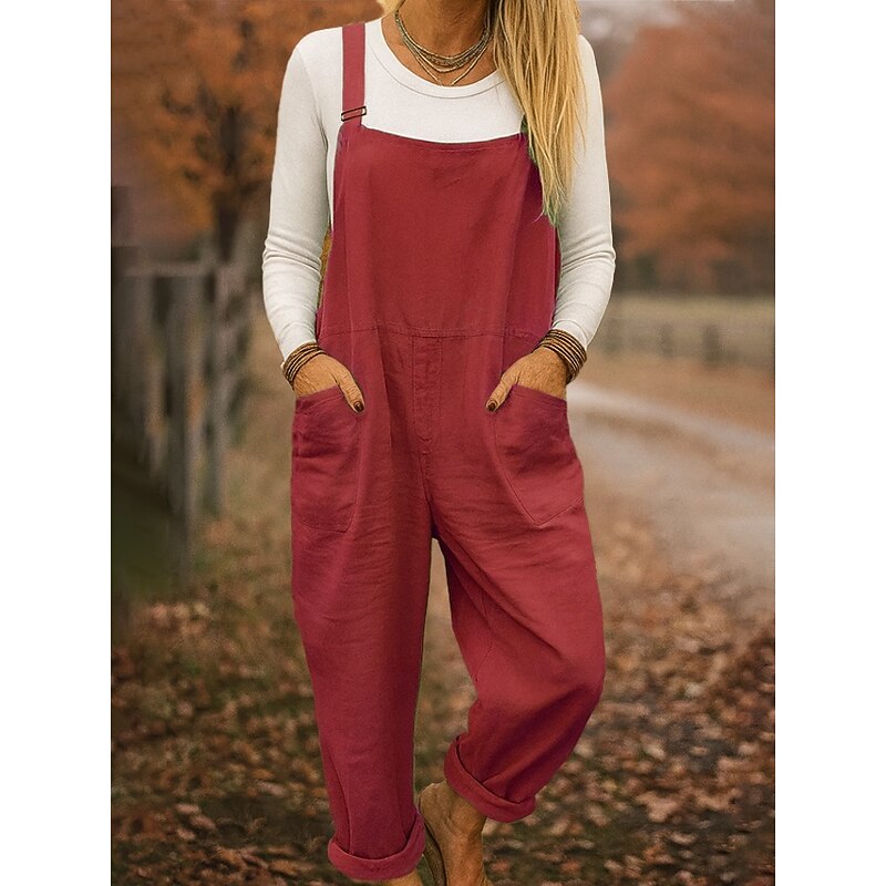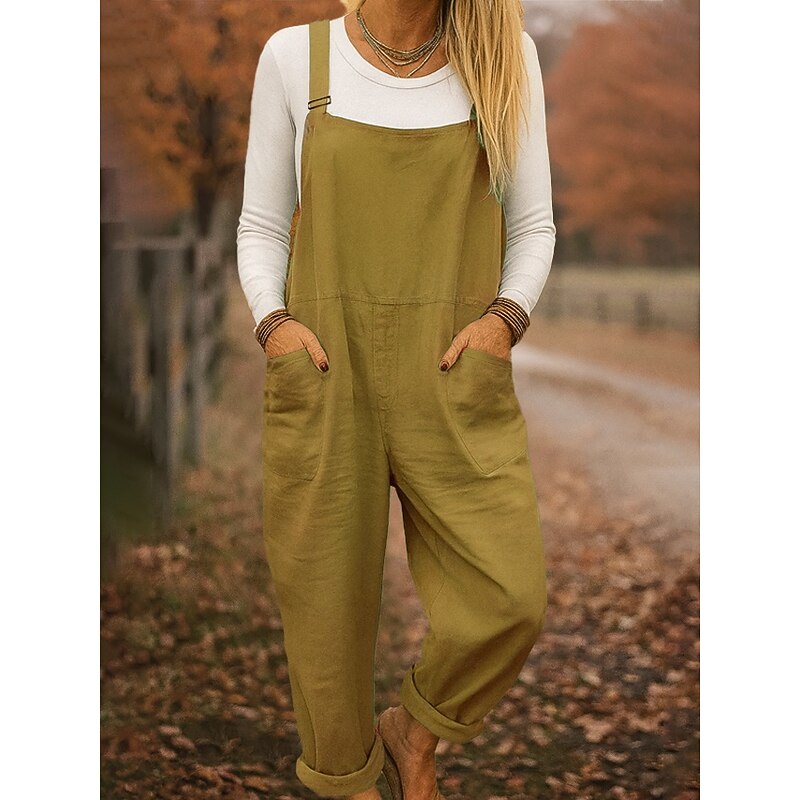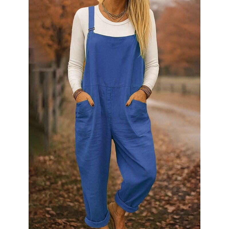 HOT ! 100% Cotton Women's Dungarees Lightweight Solid Color Sleeveless Sleeveless Straight Square Neck with Pocket Vacation Daily Loose Fit Army Green Red Blue Summer