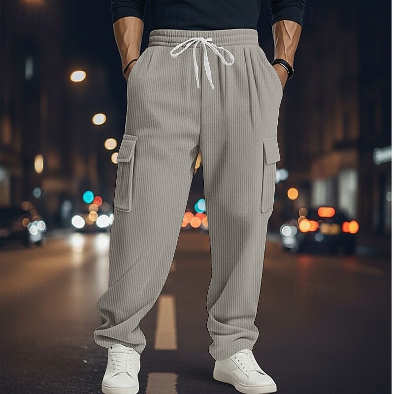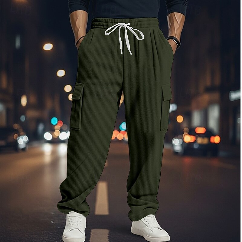 More information about Men's Cargo Pants Trousers Corduroy Pants Casual Pants Drawstring Multi Pocket Plain Comfort Full Length Outdoor Daily Streetwear Fashion Classic Style Black Navy Blue Inelastic