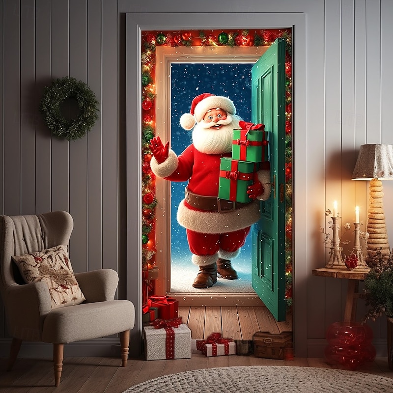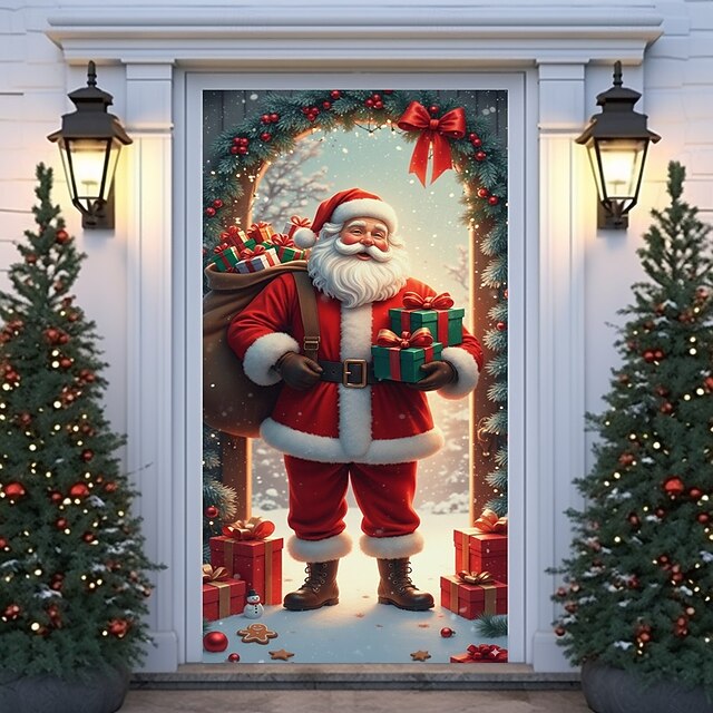 $18.49 - Christmas Door Cover Winter Holiday Decoration Drapes with Santa Claus Holding Gifts Christmas Wreath and Open Door Print for Home Entryway Living Room Bedroom Indoor Outdoor Festive Seasonal Decor 2025. Shop for cheap Christmas Door Covers online? Buy at lightinthebox.com on sale today!