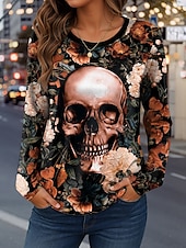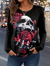 More information about Halloween Women's T Shirt Skulls Graphic Vintage Fashion Casual Long Sleeve Crew Neck Regular Tops Daily Weekend Print Pink Red Blue Gray Spring Fall