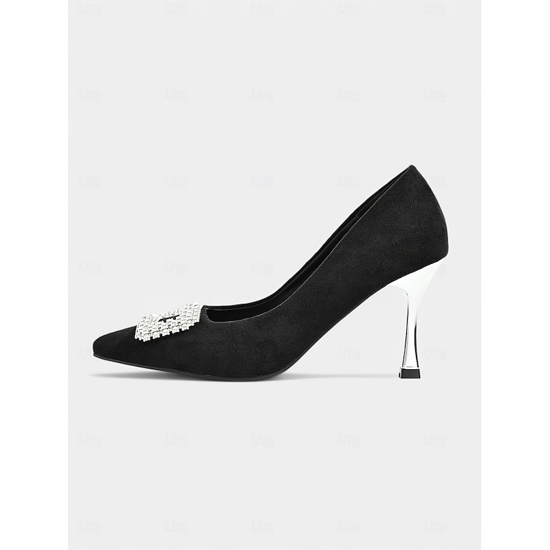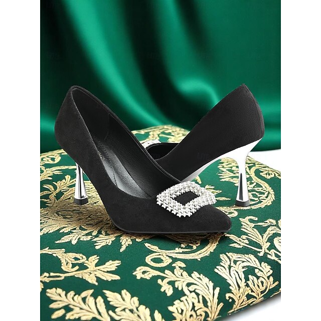 Women's Black Suede Stiletto Heels with Rhinestone Buckle – Sophisticated Pointed Toe Evening Pumps for Prom and Cocktail Occasions 1