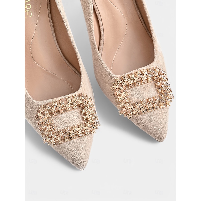 Women's Black Suede Stiletto Heels with Rhinestone Buckle – Sophisticated Pointed Toe Evening Pumps for Prom and Cocktail Occasions 17