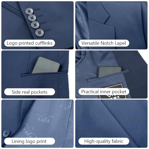 • 【Suit Blazer Design】: WYWK men's suit blazer jacket is made of high quality fabric to ensure comfort and durability. Classic notched collar with two-button design, two functional welt pockets and one inside blazer pocket for easy storage, combining aesthetics and practicality.