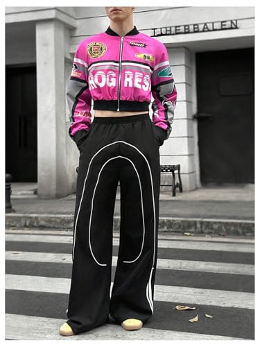 More information about OYOANGLE Men's Striped Print Elastic Waist Straight Leg Pants Trendy Track Pants with Pocket Streetwear