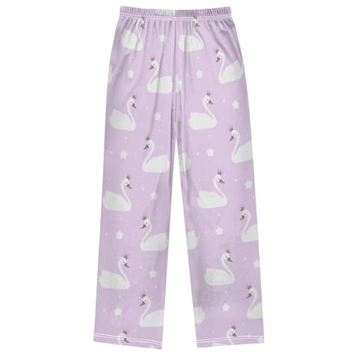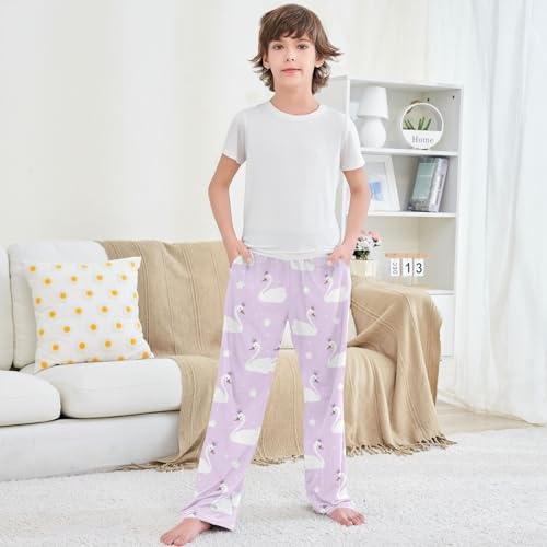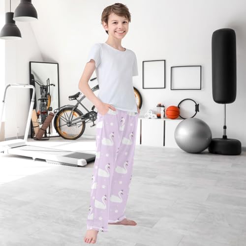 Boy's Pants Princess Swan Crown Violet Jogger Pants Elastic Waist Long Bottoms Trousers with Pockets 6-14 Years 6