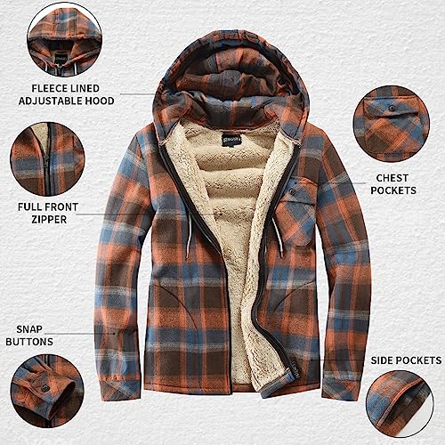 Elesuit Men's Full Zip Fleece Flannel Jackets Shirt Plaid Cotton Hoodies Soft Warm Coat for Men with Hood 7