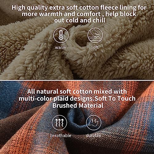 • MATERIAL:This flannel hoodie shell crafted with 100% cotton, Sleeves lining incloud Cozy and thick fleece keeps you warm and comfortable in cold weather.