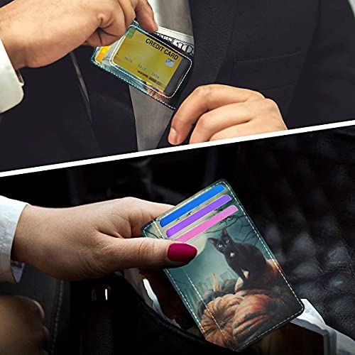 susiyo Halloween Black Cat On Pumpkin Slim Minimalist Wallets Rfid Blocking Card Wallets PU Leather Front Pocket Wallets for Men and Women 5