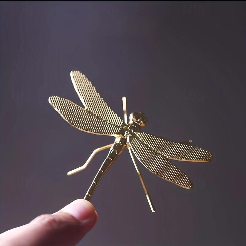 HOT ! Vintage Brass Dragonfly Figurine, Antique Copper Artwork for Home Decor, Perfect for Living Room, TV Stand, or Porch, Ideal Tea Pet Collectible & Gift