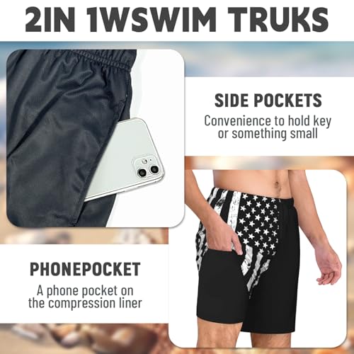 2 in 1 Mens Swim Trunks with Compression Liner American USA Flag Quick Dry Party Beach Shorts with Zipper Pockets 1