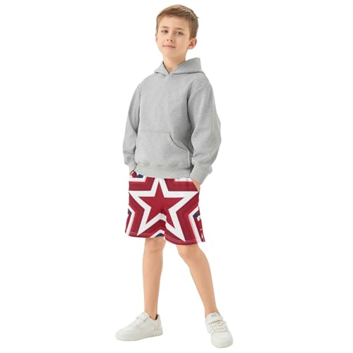 DOMIKING Flag Star Red Kids Shorts Pull-on Boys Shorts with Elastic Waist Casual Athletic Pants for Summer Playwear 4