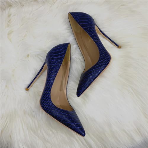 More information about Vujkliy Women's 12CM/4.7IN Stiletto Shoes Fashion Blue Snake Print Pointed Toe High Heels