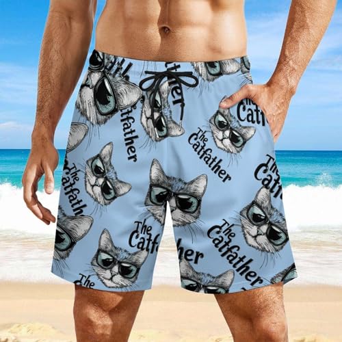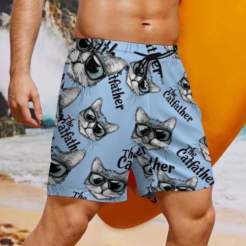 HOT ! The Catfather Cat Father Dad Mens Swim Trunks with Quick-Drying Lining Beach Shorts for Outdoor Sports