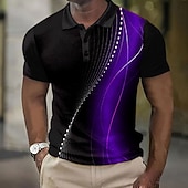 Men's Geometic Line Waffle Polo Shirts Short Sleeve Polo Shirts Collared Shirts Business Casual School Business Athleisure Buttons 3D Print Summer Red Blue Purple 1