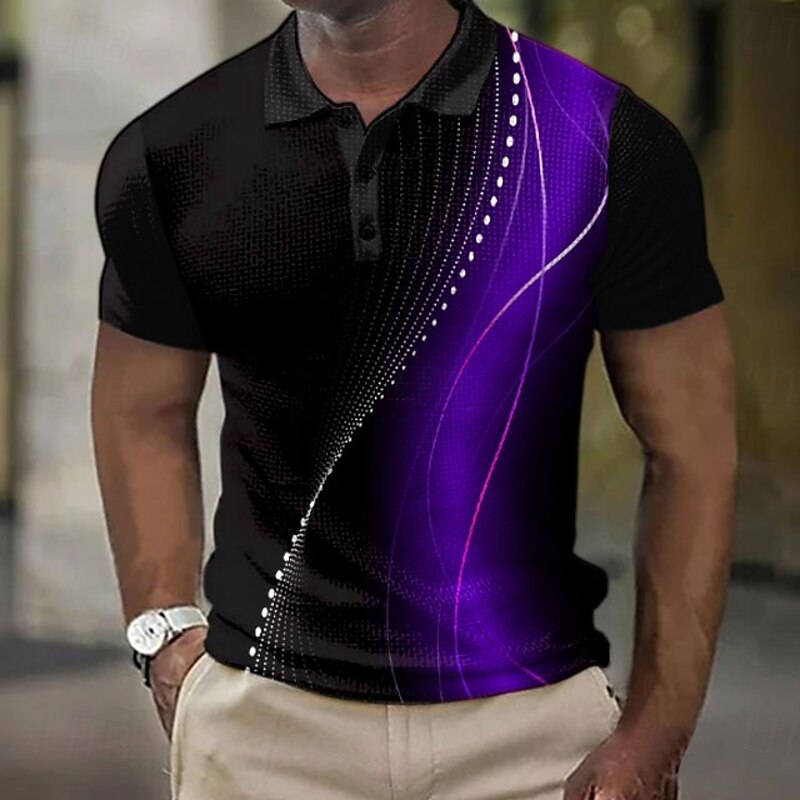 More information about Men's Geometic Line Waffle Polo Shirts Short Sleeve Polo Shirts Collared Shirts Business Casual School Business Athleisure Buttons 3D Print Summer Red Blue Purple