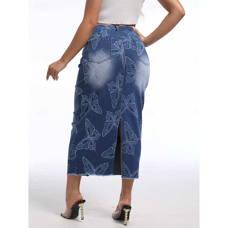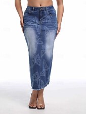 More information about Women's Skirt Bodycon Fashion Casual Midi High Waist Skirts Floral Pocket Print Inelastic Street Daily Blue Spring Polyester Denim