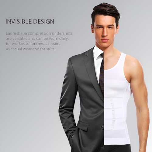 • Gynecomastia Body Shaper - LAURUSHAPE Men's Slimming Shapewear can be worn discreetly under clothes while instantly providing a firmer slimmer Stomach (Beer Belly), Waist (Love Handles), and Chest (Man Boobs) while also providing Back Support! It is designed to reduce male breast hypertrophy with seamless integrated moulding technology and reduce the appearance of gynecomastia by firming, tightening, and flattening the chest and upper torso.