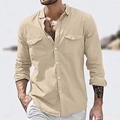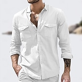 More information about Men's Shirt Linen Shirt Summer Shirt Beach Wear Button Up Shirt Solid Color Vacation Street White Green Khaki Light Blue Long Sleeve Turndown Summer Clothing Apparel Pocket