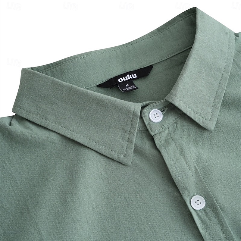 Men's Shirt Linen Shirt Summer Shirt Beach Wear Button Up Shirt Solid Color Vacation Street White Green Khaki Light Blue Long Sleeve Turndown Summer Clothing Apparel Pocket 9