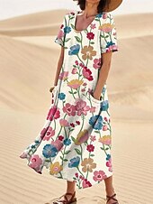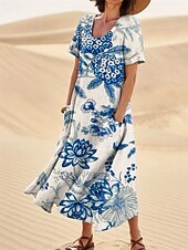 More information about Women's Long Dress Maxi Dress Casual Dress Swing Dress Summer Dress Boho Dress Elegant Fashion Romantic Outdoor Party Holiday Regular Fit Flower Short Sleeve Crew Neck Pink Navy Blue Blue Summer