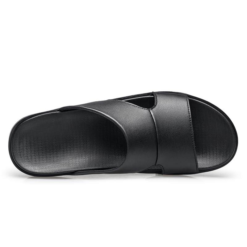 Men Black Leather Slide Sandals Slip On Casual Slippers Summer Shoes Anti-skid Wear Resistant Retro Style 6