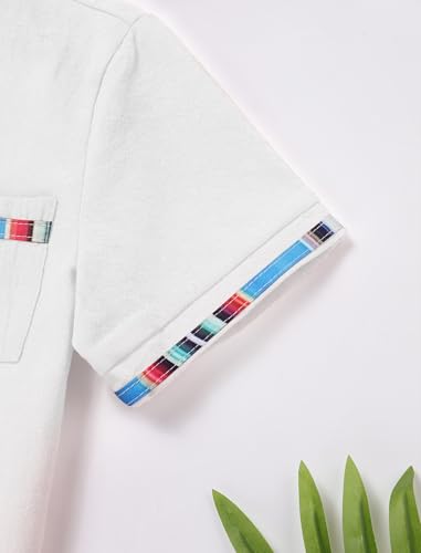 • CHIC PATTERN: boys mexican folk shirt, features short sleeve, mock neck stand collar, looks very handsome, single-breasted buttons at front, easy to put on or take off. A pocket at chest, convenient to carry some little things. multi-colored binding pattern, full of an mexican style ethnic feelings, dress your boys up with this mexican kids shirt for daily wear or celebrating the cinco de mayo, or mexican theme party.