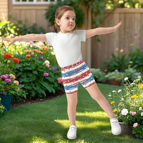 American Flag Stripes Girls Shorts Elastic Waist Sports Shorts Girls Leggings Pants for 4-10 Years 4
