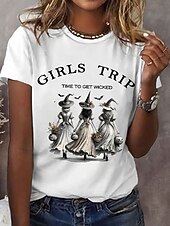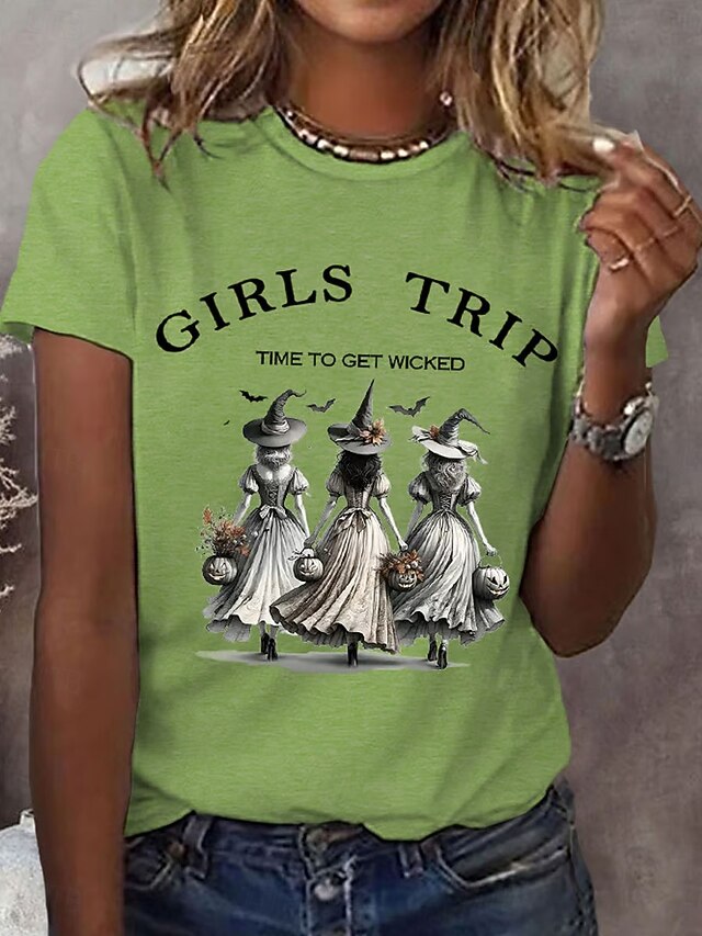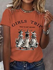 More information about Halloween Women's T shirt Witch Graphic Letter Vintage Stylish Classic Short Sleeve Crew Neck Regular Tops Daily Print White Purple Orange Green Summer Spring Fall