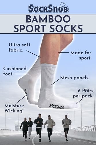 6 Pack Mens Breathable Cotton Athletic Crew Sport Socks (12-15 US, White) 7