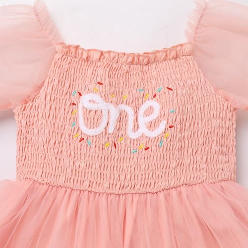 ODASDO Baby Girls Donut First Birthday Outfit Puff Short Sleeve Smocked Ruffled Tulle Tutu Princess Dress with Headband 5