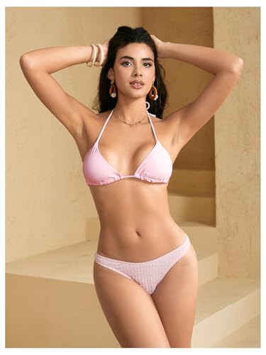 More information about WDIRARA Women's Solid Triangle Bikini Top Sexy Halter String Micro Bathing Suits Tops