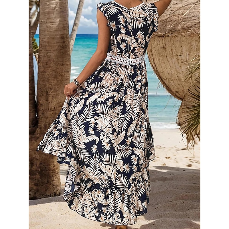 More information about Women's Casual Dress Swing Dress Tank Dress Floral Leaf Print Asymmetrical Hem V Neck Long Dress Maxi Dress Stylish Casual Daily Date Sleeveless Summer