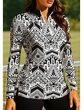 $27.99 - Women's Geometric Reactive Print Boho Tops Golf Polo Shirt Tennis Shirt Long Sleeve Print Quarter Zip Pullover UV Protection Elastic Breathable Tennis Golf Pickleball Zip Collar Shirt Polo Black White 2025. Shop for cheap Women's Shirt online? Buy at lightinthebox.com on sale today!