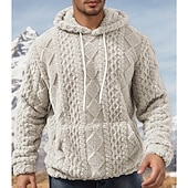 More information about Men's Jacquard Hoodie Fleece Hoodie Beige Hooded Plain Patchwork Color Block Textured Sports & Outdoor Casual Daily Streetwear Cool Sportswear Winter Clothing Apparel Hoodies Sweatshirts
