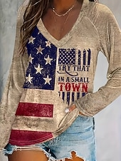 More information about Women's T Shirt Graphic Flag Vintage Stylish Classic Long Sleeve V Neck Regular Tops Daily Print Khaki Fall Winter