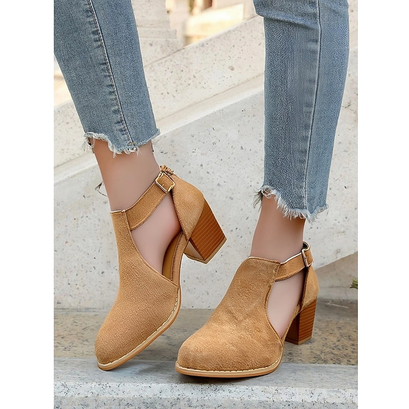 More information about Women's Tan Suede Cut-Out Ankle Boots with Block Heels - Perfect for Casual Outings, Spring and Fall Fashion, and Stylish Everyday Wear