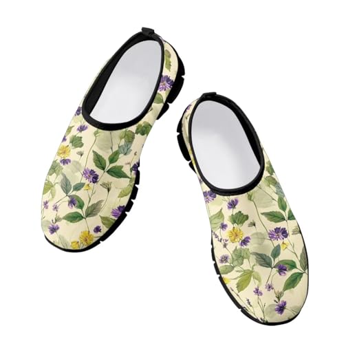 JoyLamoria House Art Flower Print Shoes for Women Casual Slip on Wide Business Flat Travel
