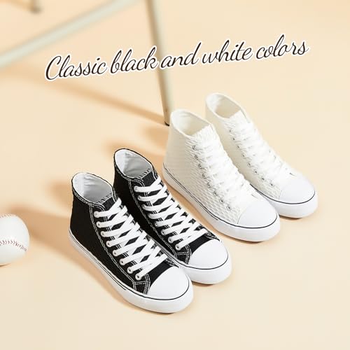 • COMFORTABLE HIGH-QUALITY CANVAS HIGH TOP SNEAKERS: Long-lasting, abrasion-resistant, breathable, and lightweight, these high top canvas shoes for women feature high-quality canvas material that combines flexibility with comfort. They are easily washable, making them a stylish and practical footwear choice.