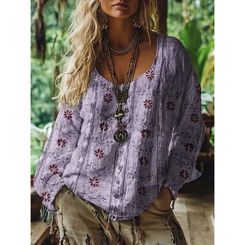 More information about Women's Western Blouse Boho Shirt Blouse Flower Modern Casual Long Sleeve V Neck Regular Tops Daily Holiday Going out Print Light Green Pink Blue Purple Green Summer Autumn