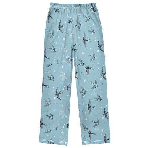 Boy's Pj Pants Grey White Swallow Bird Blue Lounge Bottoms Elastic Waist Kids Joggers with Pockets Size 6-14 6
