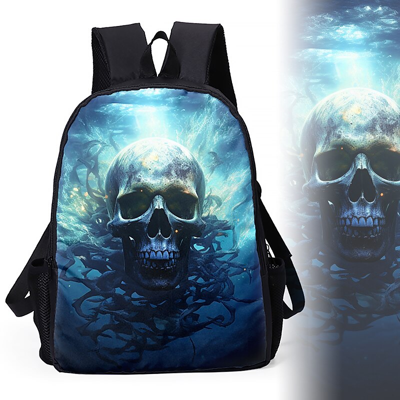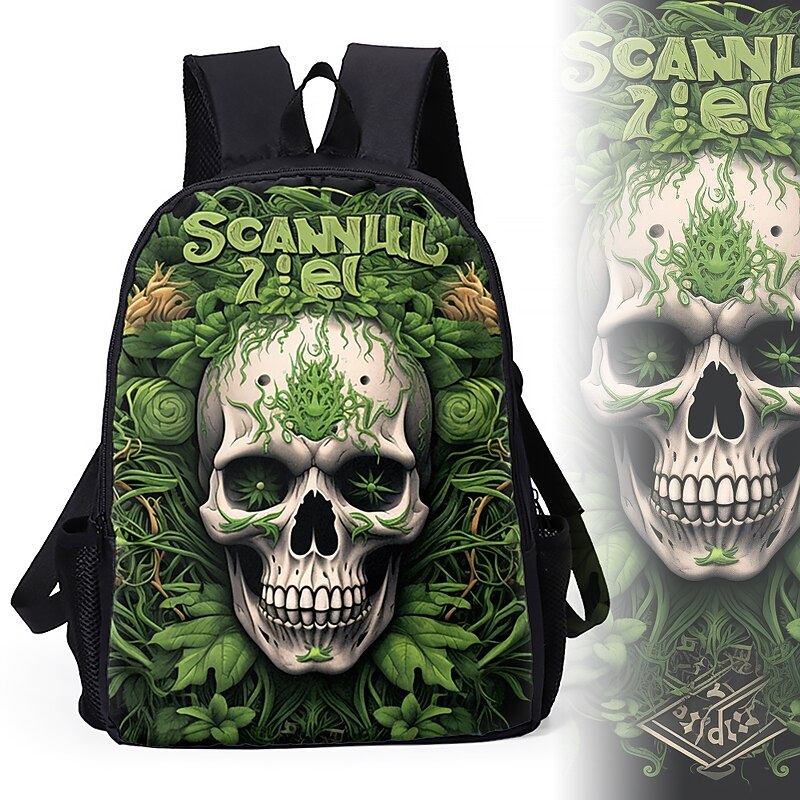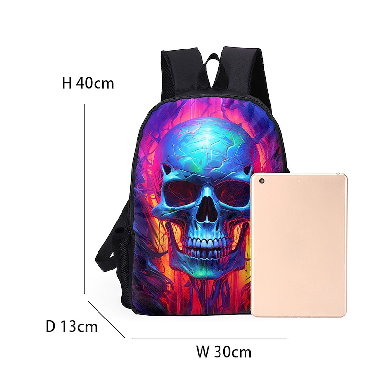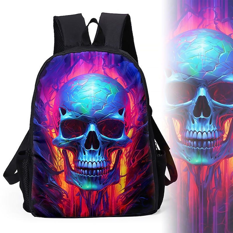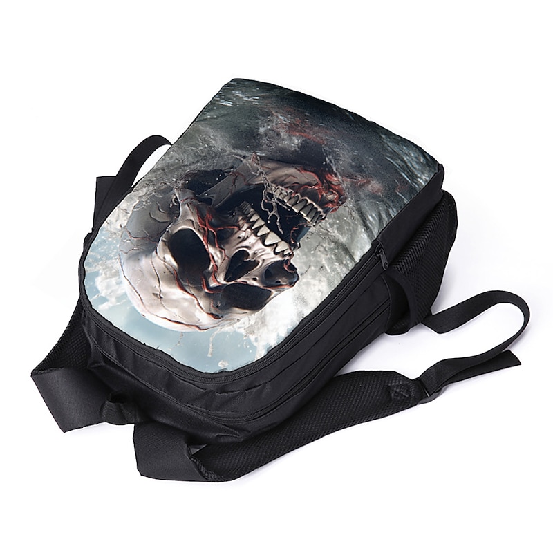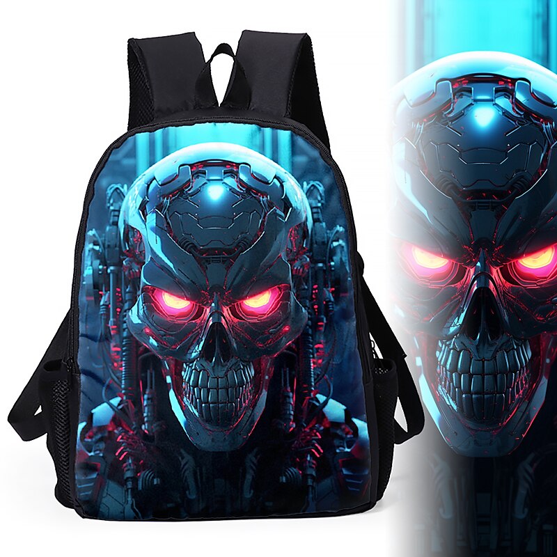 Large Capacity Cyber Skull Backpack for Teens – Futuristic Red-Eye Robot Print Laptop Bag with USB Port for School or Travel 8