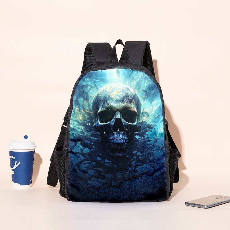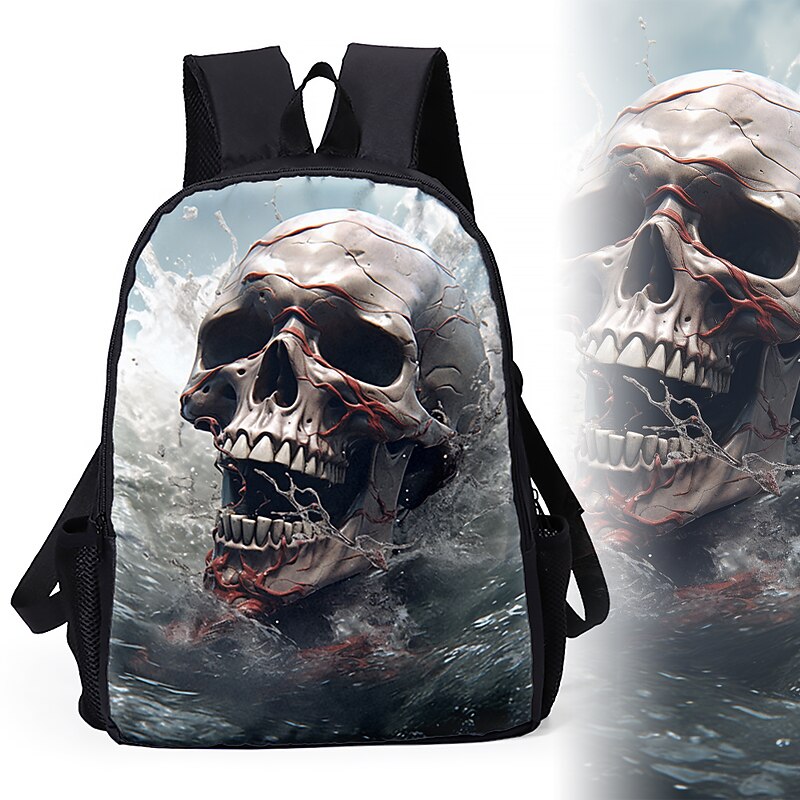 Large Capacity Cyber Skull Backpack for Teens – Futuristic Red-Eye Robot Print Laptop Bag with USB Port for School or Travel 10