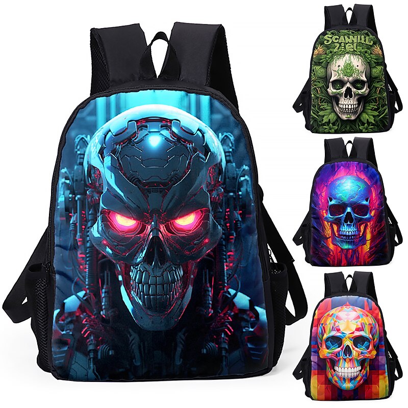Large Capacity Cyber Skull Backpack for Teens – Futuristic Red-Eye Robot Print Laptop Bag with USB Port for School or Travel 23