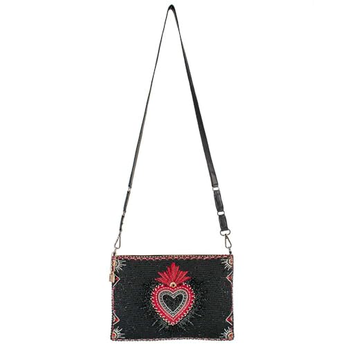 HOT ! Mary Frances Soul Searcher Beaded Crossbody Handbag with Red Embroidered Heart Novelty Evening Purse Bag, Black