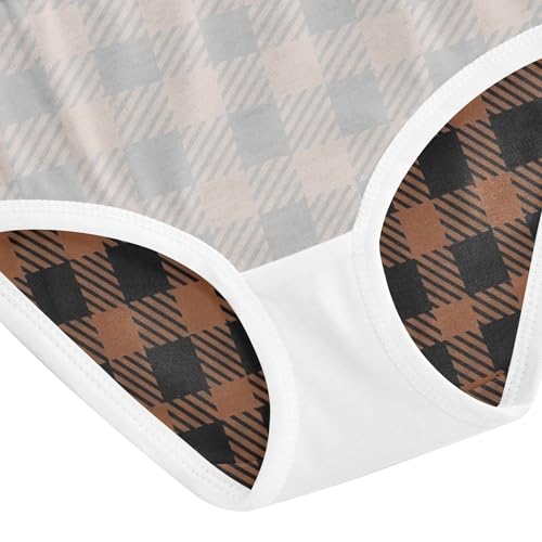 Girls Underwear Toddlers 2t Cotton Panties for Girl Print Briefs Kids Undies Classic Buffalo Plaid Black Brown 4