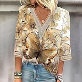Why Choose Women's Shirt Blouse Flower latest Casual 3/4 Length Sleeve V Neck Regular Tops Daily Holiday Going out Lace Print Khaki Fall?