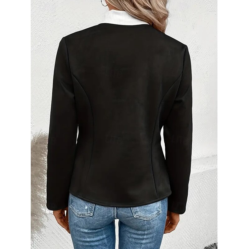 More information about Women's Jacket School Zipper Solid Color Vintage Regular Fit Outerwear Long Sleeve Spring Black S