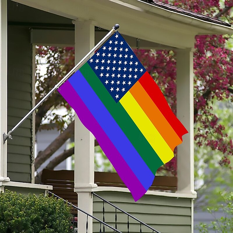 HOT ! June Pride Month LGBTQ LGBT Pride Flag Rainbow Happy Pride Outdoor Decoration Indoor with Grommets House Yard Garden Decorations Holiday Banner Sign
