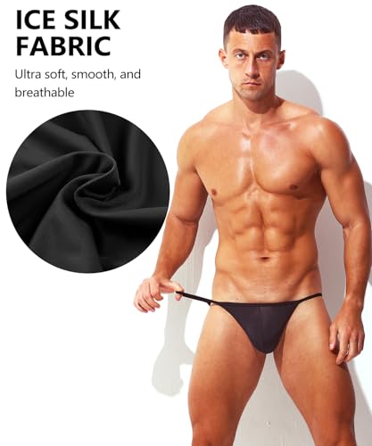 Men's Sexy Ice Silk Bikini Underwear Soft Low Rise String Cut Bulge Pouch Briefs 3