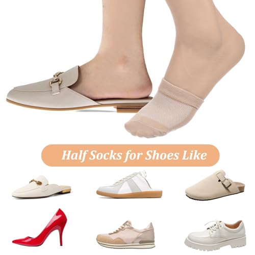 • Invisible & No Show: The half socks are designed to be completely invisible under shoes like clogs, mules, loafers, slippers, flats, slides, slingback shoes. Enjoy all day comfort without the visible sock lines